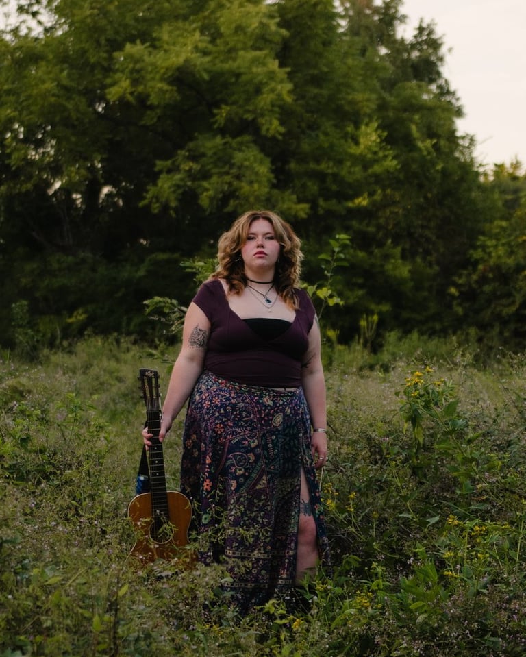 Elsa Howell took an early interest in old Appalachian ballads, a tradition rich with wild stories and haunting melodies. Her voice and attention to musical detail have won her ribbons at folk song competitions in the mountains of Tennessee, North Carolina, and her native Virginia. She spent more than a year learning the style from ballad master Elizabeth LaPrelle through the Virginia Folklife Apprenticeship Program, and Elsa has been featured at the Richmond Folk Festival, Roanoke’s Taubman Museum of Art, the Floyd Country Store, on the Inside Appalachia podcast/radio show, and she was a resident artist at the 2024 MidMountain Festival, which was devoted to examining and reinventing murder ballads. She has also carved her own path as an acoustic guitarist and songwriter, writing personal songs that meld with her more traditional material. She recorded and released Eyes Wide, her EP of mostly original material, in 2024.